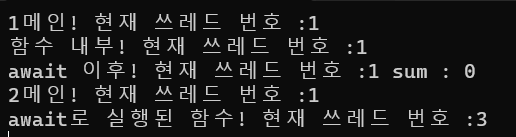 Console.WriteLine("await 이후! 현재 쓰레드 번호 :{0} sum : {1}", Thread.CurrentThread.ManagedThreadId, sum);